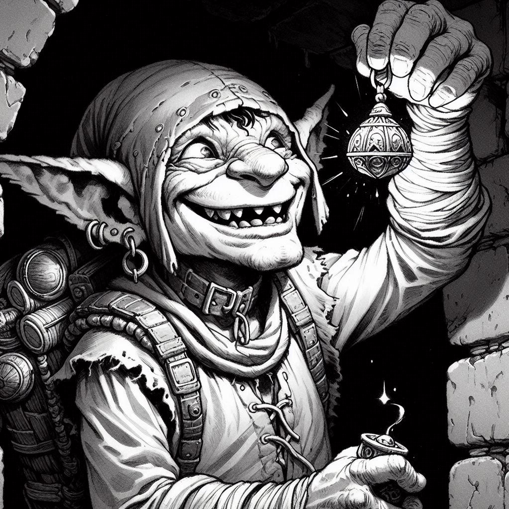 Goblins are short demihumans standing between 3’ and 3½’ tall. They possess skin ranging in colour from yellow to orange to red (and everything in between), while their eyes are usually reddish in hue and are visible even in the dark. Though many goblins live underground, not all do so, especially those most likely to interact with humans and join adventuring parties. Goblins can be somewhat surly and resentful when interacting with other beings, or even their own kin, like bugbears and hobgoblins. These attitudes are only heightened by the fact that many goblins—though not all—are aligned with Chaos.